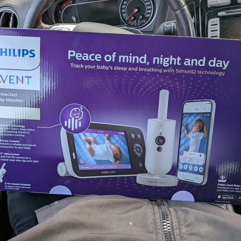 Philips Avent babycall med en foreldreenhet og en barneenhet. Settet består av to enheter i lys blå farge med display på foreldreenheten og flere betjeningsknapper på begge enheter. Babycallen er beregnet for lydovervåking av barn, der barneenheten plasseres i nærheten av barnet og foreldreenheten tas med av den voksne i hjemmet. Strømforsyning skjer via ledning, og enhetene har innebygget høyttaler og mikrofon for overføring av lyd fra barnerom
