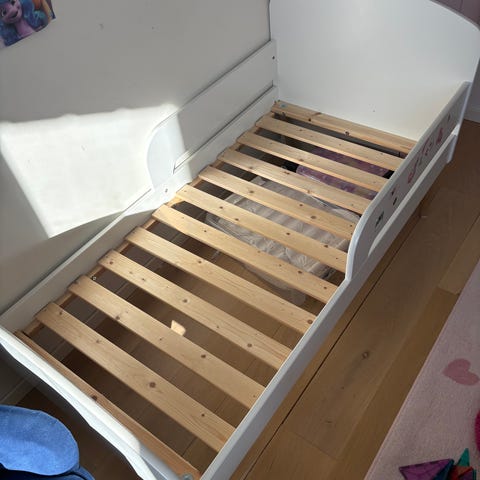 Solid barneseng (70x170) selges da vi har gått over til større seng.