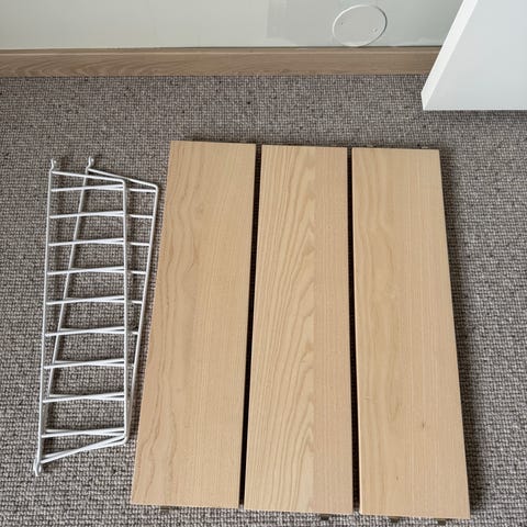 String skohylle med 4 hylleplater i beige og ramme i hvit