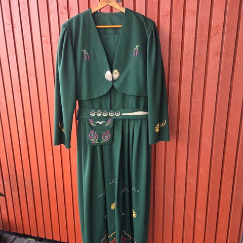 Pent brukt komplett Karendrakt. Sølv, 2 silkeskjorter og hårbånd medfølger.