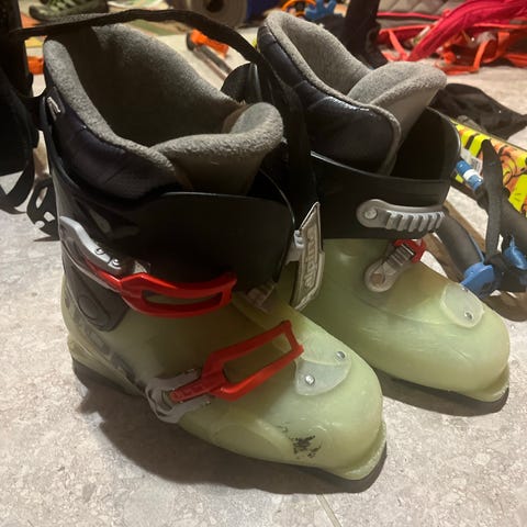 Alpinstøvler i grå farge. Støvlene har flere spenner foran for god tilpasning og stramming. Passer til alpint bruk i skianlegg.