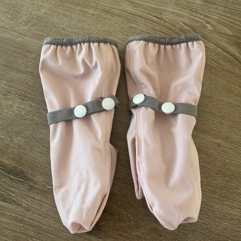 Det ene paret er fra Didriksons og det står str 4 år, men de er store i størrelsen. Det andre er fra Vill str 5-6 år. Det er noe slitasje, men de kan fint brukes mer.