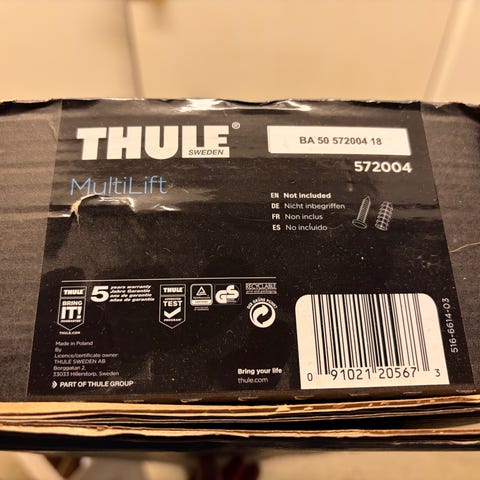 Thule Boxlift kan du enkelt feste din skiboks i taket på garasjen.