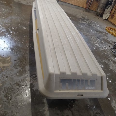 Boksen har åpning fra siden og innvendige skinner for festing av last. Egner seg til transport av bagasje, ski eller annet utstyr på bilturer. Det er synlig hull på lokk og underside, som bør vurderes ved bruk. Nøkkelen er knekt i låsen, men kan åpnes og lukkes med et flatt skrujern.