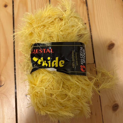 Gjestal Orkide luksuspelsgarn i lilla farge. Garnet har pelsstruktur med lange, myke fibre som gir en lodden overflate. Egner seg til strikk og hekling av blant annet kanter, tilbehør, plaggdetaljer og interiørprosjekter der man ønsker en fluffy effekt. Flere nøster i samme farge vises på bildene, med oppgitt vekt per nøste på kjøkkenvekt.