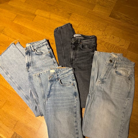 Buksepakke med bukser fra Bikbok, en fra Gina og en fra Zara☺️Noen har bruksmerker men andre er nesten ubrukt.