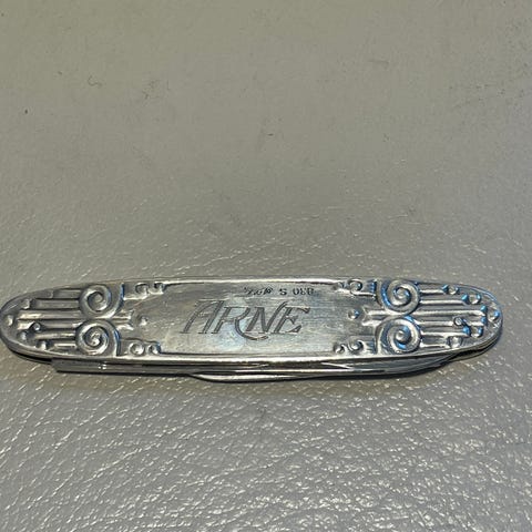 antikk sølv lommekniv Solingen laget av Nils Erik Elvik (1853-1935) foldekniv