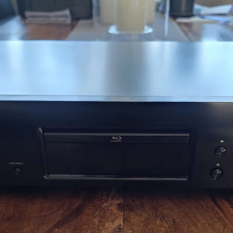 Blu-ray spilleren har stått på et direktørkontor, tilkoblet nettbrett som fjernkontroll. Medfølgende original fjernkontroll og ledninger er derfor aldri blitt brukt.