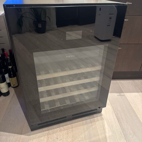 Pent brukt vinskap med plass til 12 vanlige vinflasker. En kjølesone. Hyller kan tas ut for fleksibel bruk. Må hentes i Hønefoss.