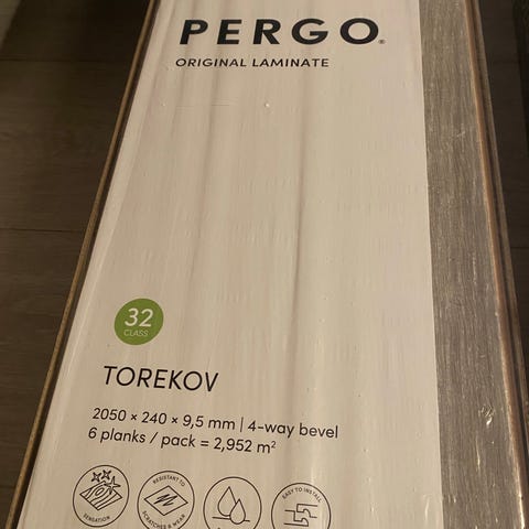 Pergo Original Laminate Trondheim laminatgulv i fargen fresh nordic oak. to nye uåpnet pakker. Overskudd etter oppussing, selges for 100kr/m2 (5,2m2 tot)