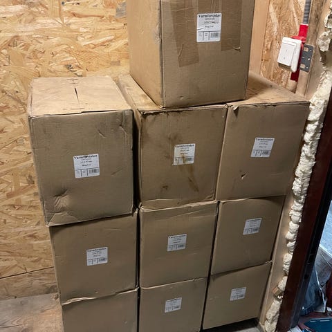 Flytteesker (8-10 stk) i ulike størrelser. Egnet til flytting, lagring eller pakking av gjenstander. Eskenes størrelse og antall varierer, og materialet er vanlig bølgepapp. Kan brukes til organisering, oppbevaring eller som emballasje ved sending av varer.