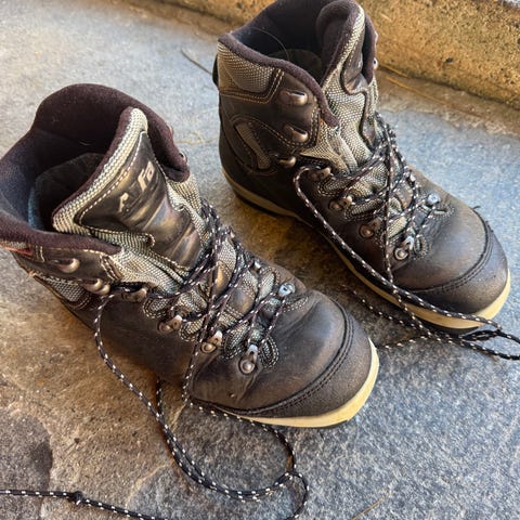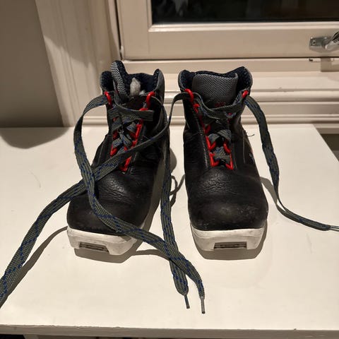 Skisko for barn i grå og svart farge. Skoene har høyt skaft for bedre støtte rundt ankelen og snøring foran. Overdelen er i et kombinasjonsmateriale med tekstil og syntetisk materiale.