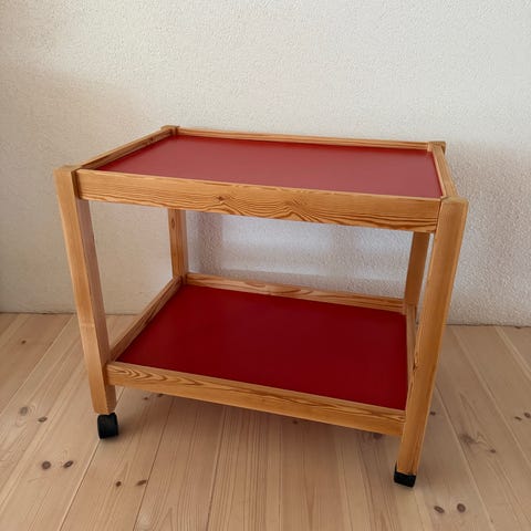 Bordet er av heltre furu, tappet og plugget (i stedet for skruer). Laget for trybo av stange bruk. Møblene kan ikke demonteres for da vil tapping og plugging bli ødelagt. Fikk merke for god design i 1968. Du du kan dekke til 10 personer med begge klaffer ute. Originalt kjøpt på møbelgalleriet. Malt understell med fargen Grå skifer.. Trengs et malingstrøk. 240 cm med klaffene ute.