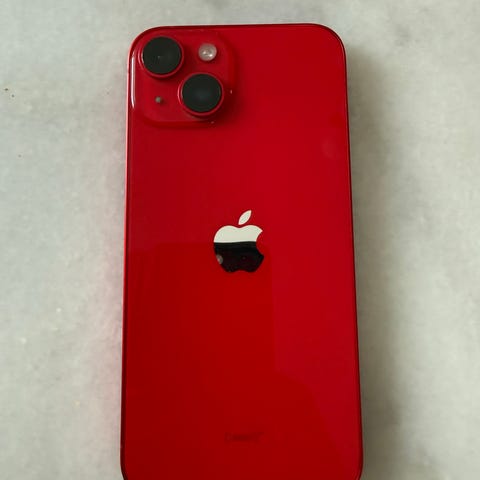 Apple iPhone 14 mobiltelefon med 128 GB lagringsplass i rød farge. Selges som den er.