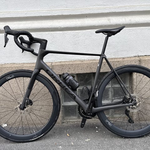 Strøken ramme satt opp med nytt Shimano 105 di2 gruppesett og nye Elitewheels karbonhjul 50mm disc.