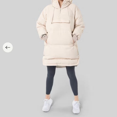 Ponchoen har 90/10 dun med fillpower på 700. Isolert hette og krage. Elastisk mansjett, brystlomme og holdbar, PVC-fri vannavstøtende behandling. Responsibly Sourced Down for en bærekraftig produksjon. Ordinær pris: 2 499. Den er som ny.