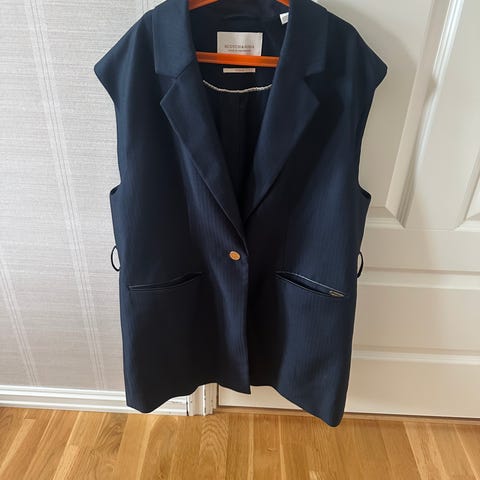 Pent, innsvinget blazer i mørk grå med sort stripe på sidene.