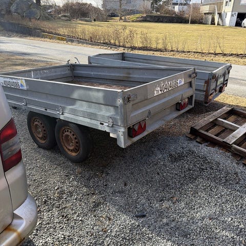 Gaupen tilhenger med boggi-aksling. God stand, byttet lykter med kabel og kontakt(13 pol) og bremser i 2022. Kulekobling og gummi på denne 2026.