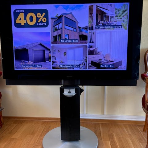 Samsung The Sero TV med roterende skjerm som kan brukes både i liggende og stående format. Modellen står på integrert sokkel, og skjermen kan vinkles og roteres etter innholdet som vises. TV-en egner seg for vanlig TV-titting, strømming og visning av mobilinnhold på stor skjerm.