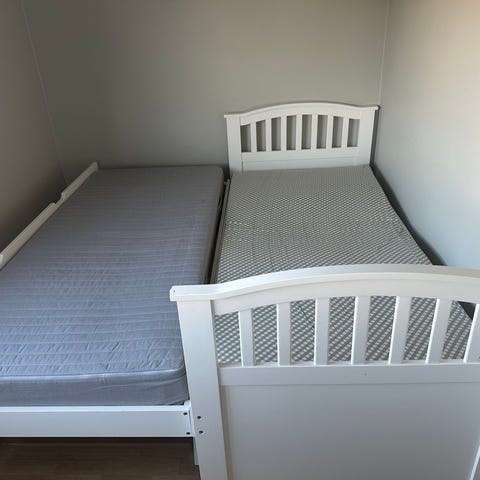 Madrassmål: 2 stk hver 75 cm bred og 200 cm lang. Overmadrass 150 bred og 200 cm. Merke Dreamzone.