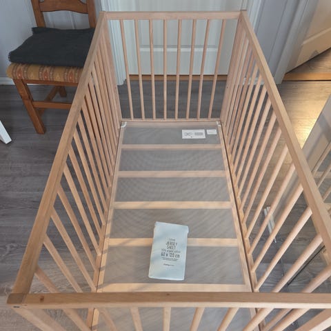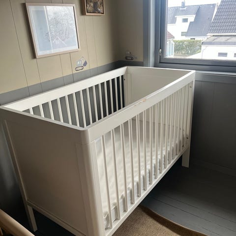 Selger en pen brukt sprinkelseng, brukt til et barn, selges sammen med en madrass, 2 stykk laken og en kantbeskytter. Veldig fornøyd med senga. Kan stilles i 3 høyden. Den er skrudd fra hverandre så det skal være enkelt å frakte. Mål 60 x 120