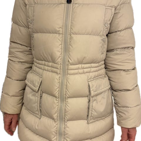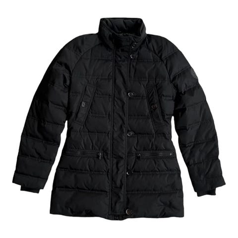 Moncler dunjakke for dame i størrelse S. Jakken er svart og har lengre passform som går ned over hoftene. Yttermaterialet er i 100 % polyester, mens fyllet består av nytt dun. Jakken har glidelåslukking foran og høy krage. Passer som ytterjakke i kjøligere vær.