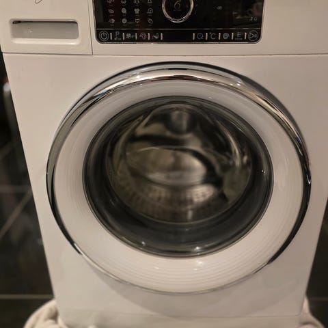 Tørketrommelen har frontbetjening med elektronisk display og programvelger. Den er en kondenstørketrommel, noe som betyr at fuktigheten samles opp i en beholder eller ledes ut via avløp i stedet for å gå ut gjennom ventilasjon.