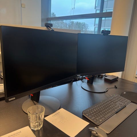 Selger en svært stor og produktiv Samsung 49” buet ultrawide-skjerm. Perfekt til kontor, trading, eiendom, multitasking eller hjemmekontor — tilsvarer to store skjermer uten ramme i midten.