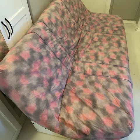 Sovesofa fra Jysk gis bort ved henting. Sofa har 2 små flekker og en sprekk i bunn. Det ble brukt på gjesterommet med en madras over og fungerte som dobbelseng . Med fint teppe eller sofatrekk kan den fortsatt brukes en god stund fremover. Kan hentes fra Svinndal, helst frem til 8.03.26