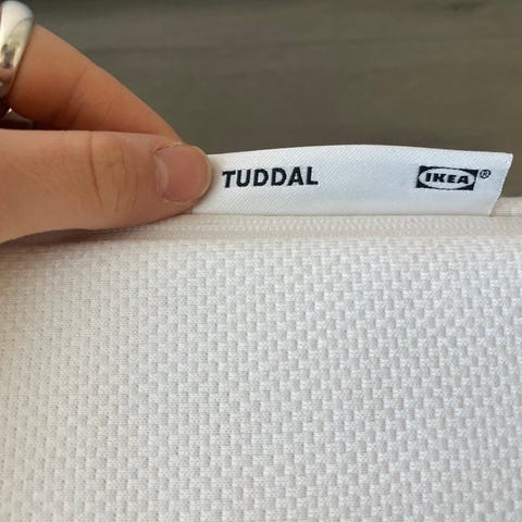 IKEA SNARUM madrass i lys tekstil.