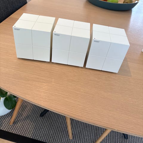 Jensen Omni Mesh trådløs ruter inkludert strømkabel.