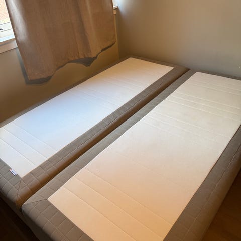 Selger to enkeltsenger som fint kan settes sammen til en dobbeltseng med overmadrass. De har vært brukt som gjesteseng så derfor lite brukt og i svært god stand.