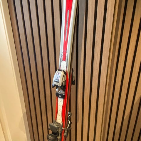 Godt brukte slalomsko 22.5 tilsvarer ca str 40. Den man holder i for å dra på seg skoa har hoppet ut, vanskelig å få inn igjen. Må hentes