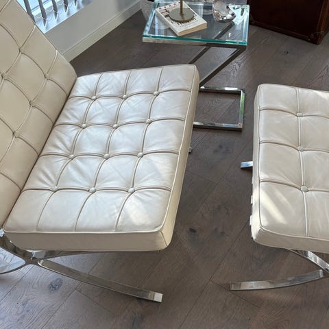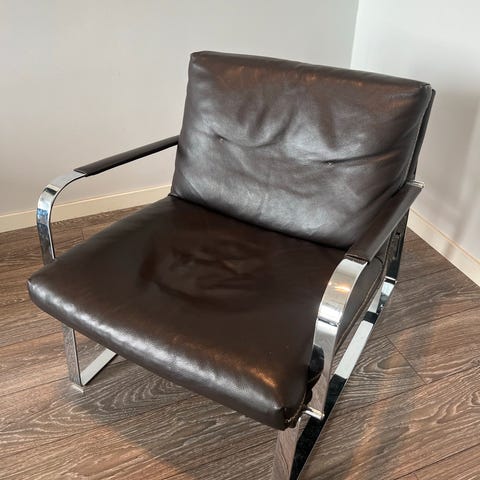 Selger en elegant og tidløs stol i skinn. Passer både i stue, kontor eller som et flott statement-møbel.