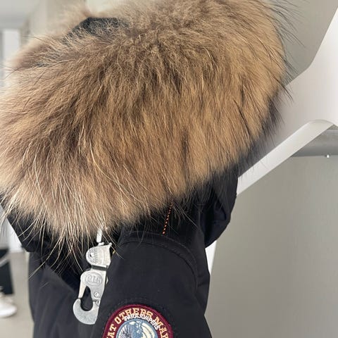 Parajumpers Masterpiece Series dunjakke for dame i størrelse S. Lang modell i svart med dunfyll for god isolasjon. Jakken har hette med pelskant, glidelåslukking foran og flere praktiske lommer. Egnet som yttertøy i kaldt vær.