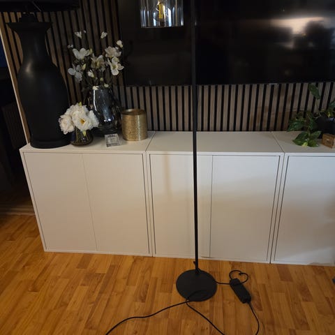 Selger denne fine gulv lampa pga flytting. Har hatt den i tre år, og den ser like fin som ny ut. Lyset kan dimmes, så det er veldig praktisk. Man kan også justere tauet, så du kan velge lengden den skal henge i. Ta kontakt om du har flere spørsmål
