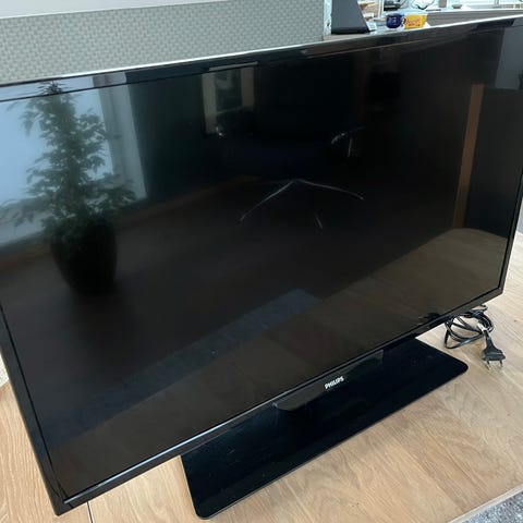 Philips TV for bruk i stue, soverom eller andre oppholdsrom. TV-en har flat skjerm og bein, og kan plasseres på hylle eller TV-benk.