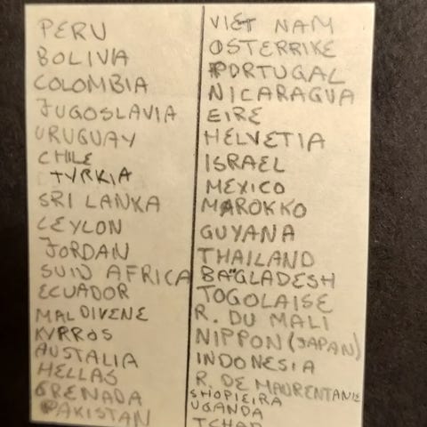 Frimerkealbum med utenlandske frimerker fra en rekke land.