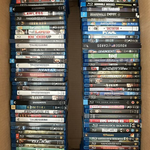 Litt over 100 stk blu ray filmer selges samlet.(har telt med de som er flere av i samme som feks serier)Noen få er dvd.Pakker godt og sender raskt.2 par briller følger med😊