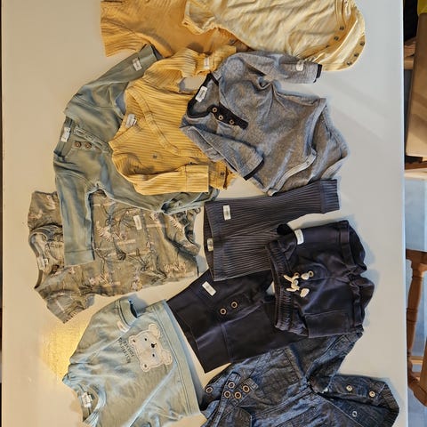 Pent brukte ulbodyer. Den ene har fått en rift, se bilde. De tre andre er strøkne. Fra joha, wheat, lindex og name it.