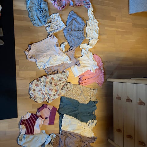 Generelt pent brukt klespakke, noen plagg er kun vasket, mens andre er brukt mer. Inneholder 9 bodyer, 4 bukser, 2 pysjer, en tunika, en romper med lange ben og en romper med korte ben. Merker som newbie, fixoni, name it, lindex, hust and claire, lil atelier og h&m.