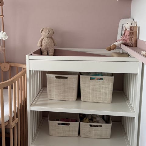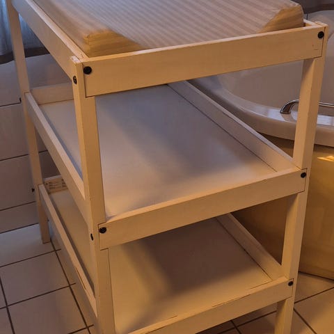 Jollyroom stellematte med avtakbart trekk i grønnfarge med hvite prikker. Stellematte har opphøyde sider for å gi barnet støtte under stell. Trekket har glidelås og kan tas av for vask. Under trekket er det en lys stellepute med noe misfarging, som vist på bildene. Egner seg til bruk på stellebord eller annen stabil overflate ved bleieskift og stell av baby.