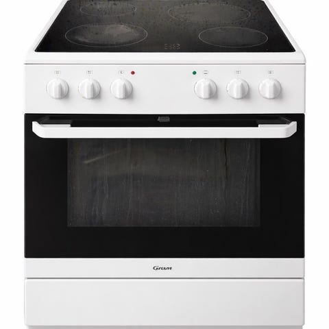 Gram keramisk komfyr med keramisk topp og integrert stekeovn. Komfyren har fire kokesoner på glasskeramisk platetopp og frontplasserte dreieknapper for betjening. Stekeovnen har flere riller for plassering av brett og rist. Ytre utførelse i stål og glass i ovnsdør. Egnet til vanlig matlaging og baking på kjøkken. Grunnen til at den selges billig er at ovnen nede sluttet å virke men det kan fikses hvis man bytter noen varme deler.