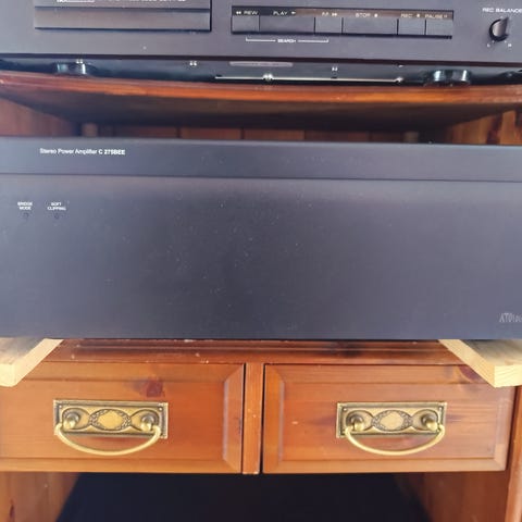 Denne er blåst helt ren for støv innvendig, kondensatorer i protection kretsen er skiftet da disse var dårlige. Denne fungerer helt topp og har mange år igjen.