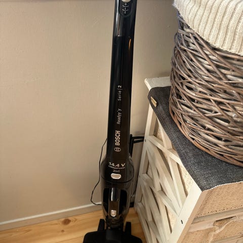 Skal jeg være helt ærlig.. en skikkelig dårlig støvsuger, men den har funket de to årene vi har hatt den. Er jo veldig grei om du bare kjapt ska ta noe, den kan stå oppreist av seg selv og er 2 i 1 med avtagbar håndholdt støvsuger også.