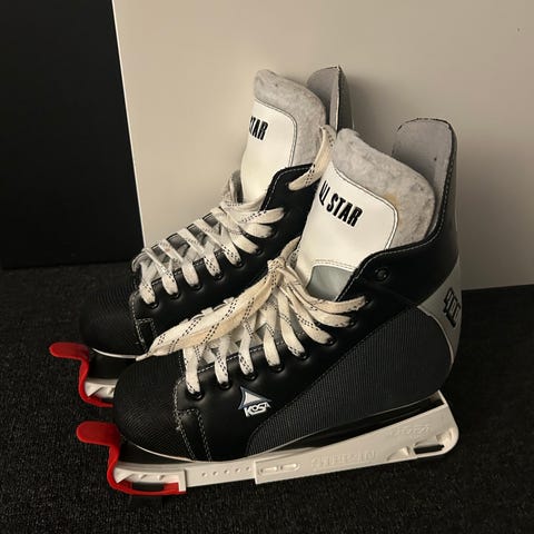 Reebok ishockeyskøyter i størrelse 40 (US 6,5 / UK 6 / 25,5 cm). Skøytene er svarte med hvite lisser og polstret, hvitt innerfôr for økt komfort rundt ankel og fot. Modellen har fastmontert skøytestål tilpasset ishockeybruk. Egner seg til ishockey og generell skøytebruk på isbaner.