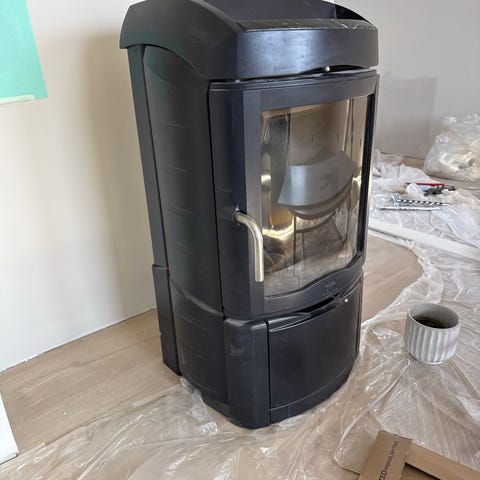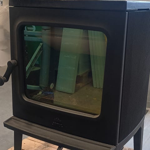 Jøtul F 250 vedovn i grå utførelse med ny vermiculite plate .