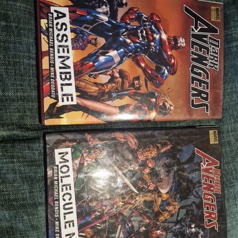 DC Dark Days: The Road to Metal og DC Dark Nights: Metal – Dark Knights Rising tegneserier i trade paperback-format. Begge bøkene er på engelsk og samler historier knyttet til DCs Metal-event, med Batman og andre figurer fra DC-universet. Inneholder flere kapitler skrevet og tegnet av ulike serieskapere, med fargerike omslag og illustrasjoner i superhelt-sjangeren. Passer for lesere som følger DCs moderne superheltserier og ønsker en samlet utgave av disse historiene.