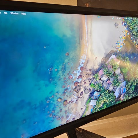 Hdmi- og Displayport-kabel følger med, samt strømadapter.