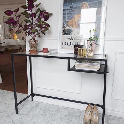 IKEA skrivebord med skuffer i hvit utførelse. Bordet har en romslig bordplate og en skuffeseksjon med flere skuffer på venstre side for oppbevaring. Under bordplaten er det god benplass. Passer som skrivebord eller sminkebord på soverom, kontor eller ungdomsrom.
